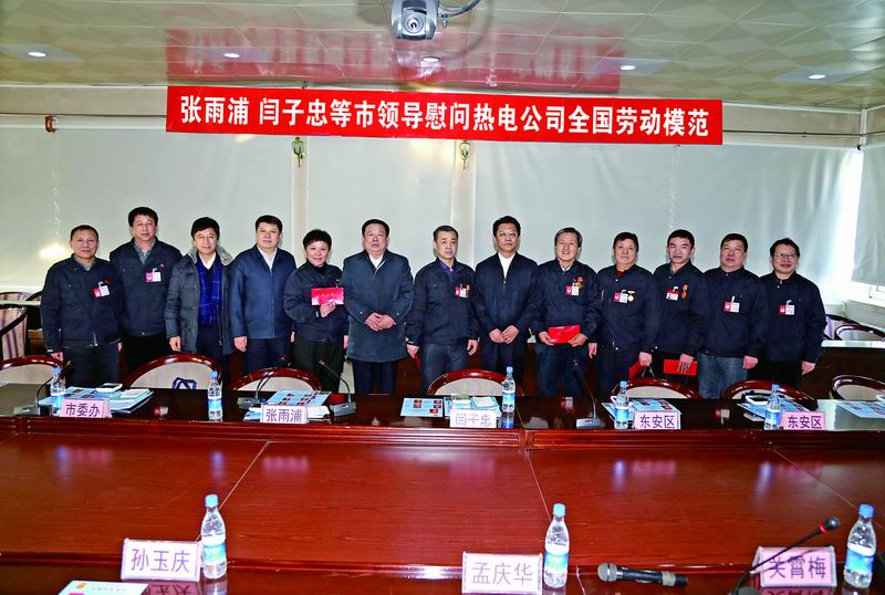 1月22日,市委書(shū)記、市人大常委會(huì)主任張雨浦,副市長(zhǎng)、市公安局局長(zhǎng)閆子忠代表市委市政府到我公司慰問(wèn)全國(guó)勞動(dòng)模范,為勞模們送來(lái)慰問(wèn)金,并借此轉(zhuǎn)達(dá)了對(duì)全市各級(jí)勞動(dòng)模范及其家屬的新春?jiǎn)柡?。市總工?huì)、市委辦、東安區(qū)等領(lǐng)導(dǎo)陪同慰問(wèn)。